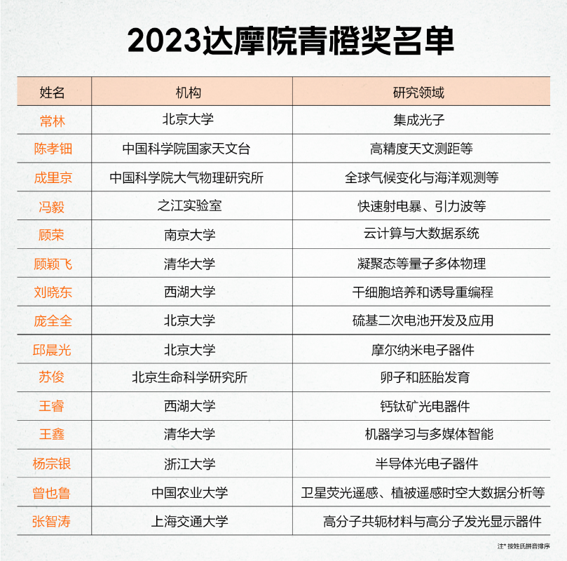 达摩院青橙奖于2018年由阿里巴巴公益、达摩院联合发起,旨在发掘和帮助更多对科技进步有重要推动作用的35岁以下中国青年科学家,鼓励他们在重大科研攻坚中挑大梁,未来成为中国科学研究中坚力量。达摩院青橙奖面向广泛的科学研究领域,包括数学与物理类、化学与材料类、生命科学与医学类、天文与地学类、信息科学与工程类、新兴交叉科学类等。有别于一般的科学奖项评选,青橙奖选拔摒弃传统的论文和资历评审标准,重视参评人科研成果的科技创新性、成果价值影响力及社会影响力。