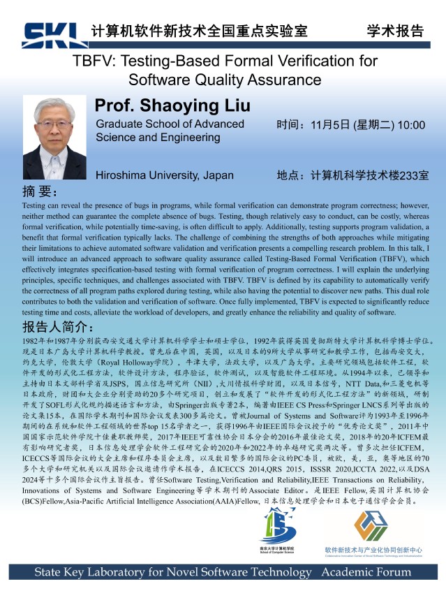 2024年11月5日 “软件新技术讲坛” 学术报告 - Prof. Shaoying Liu