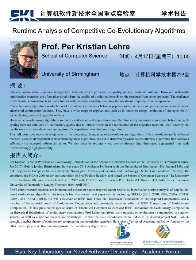 2024年4月17日 “软件新技术讲坛” 学术报告 - Prof. Per Kristian Lehre
