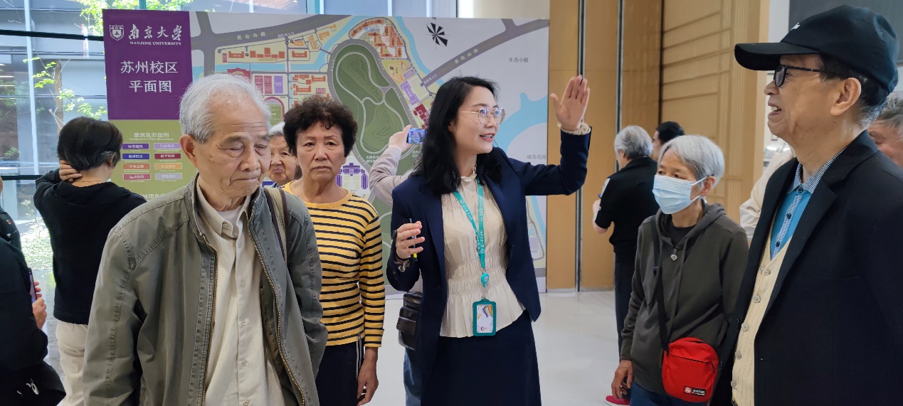 感想和致谢 : 组织老同志参访出发前精心准备是重要一环。对于苏州校区优越的地理位置,优美的校园环境,别致的建筑风格以及先进的办学理念和现代的专业设置等信息,对于在南大工作一辈子的退休老教师早有耳闻,都希望有机会亲眼来看看,特别是80岁以上的高龄老教师此愿望更为強烈。如何做到安全出行既挑战也是责任。计算机系和地海麻豆社的退协分会负责人经会商,自4月12日玄武湖健身走结束后就着手进行了筹备工作,征集参加者过程中得到广大退休老同志的踊跃响应,其中地海院退协分会报名人数超过40人,计算机系退协分会报名人数超过50人。尽管再三强调乘坐大巴去苏州校区单程要三个小时,来回六个小时以上,退休老同志要评估自己的身体状况,做自己健康的第一责任人,但仍然阻挡不住老同志们的希望参加的迫切热情。其中,我们系80岁以上报名人数19人。由于超过80周岁无法购买旅行社责任险,因此,上车前,一方面同各位超过80周岁的老同志签署旅行社免责承诺书,另外,系里委派了在职同志全程陪护老同志。系領导和系办负責人还专门安排车辆把已入住养老机构的老同志接送到出发集合点以避免在地铁公交换乘中间发生意外。在此,对系领导的支持表示真诚感谢! 并对江苏俏乐一族文旅公司提供的周到服务一并表示谢意!