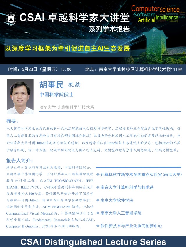 2024年6月28日 “CSAI卓越科学家大讲堂” 学术报告 - 胡事民 教授