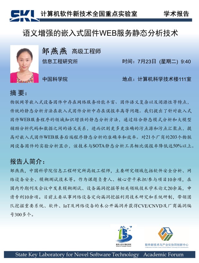 2024年7月23日 “软件新技术讲坛” 学术报告 - 邹燕燕 高级工程师