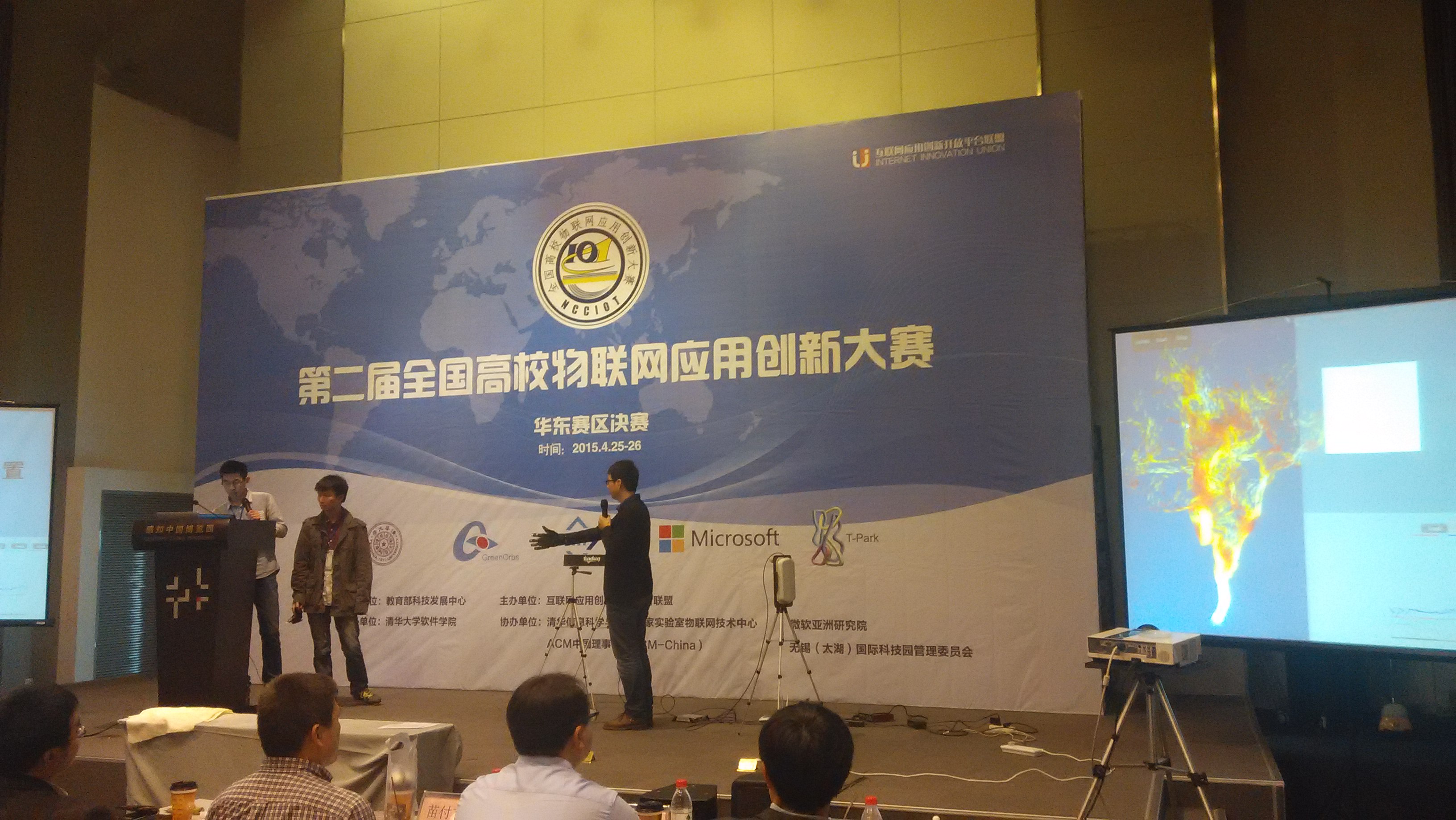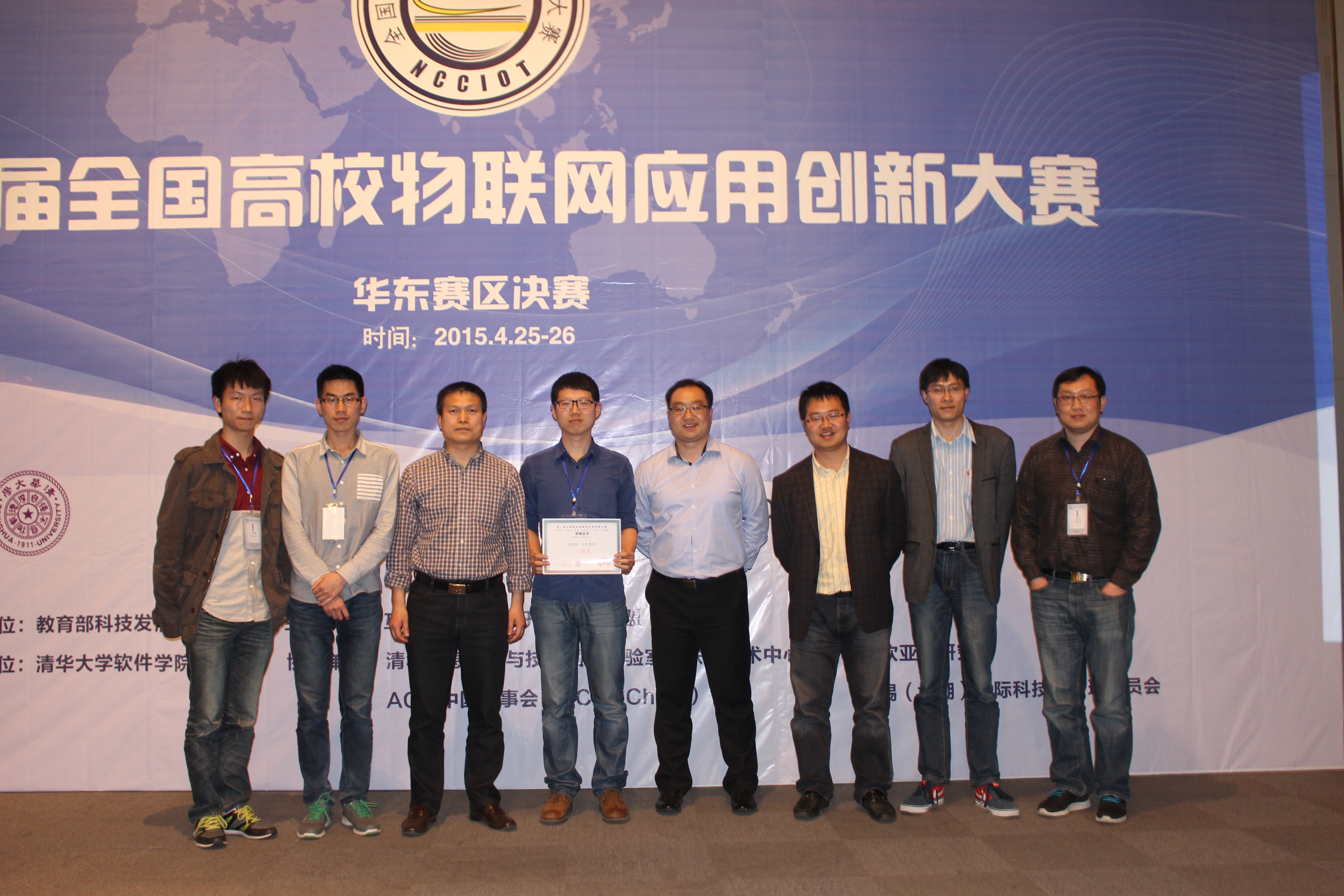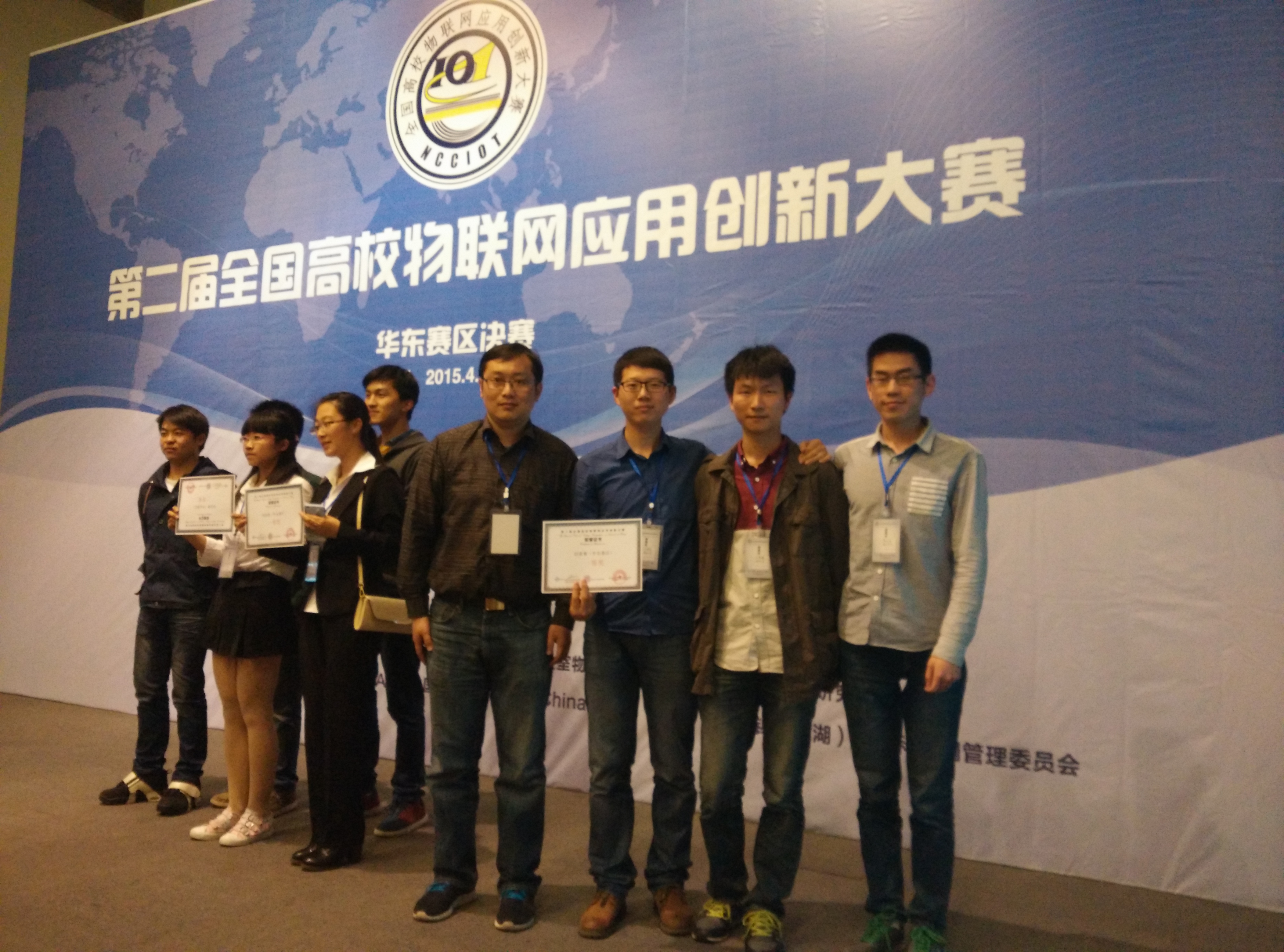 、解放军理工大学、南京理工大学、南京邮电大学、苏州大学等在内的几十所高校参加。来自我系分布式计算团队(成员:孙健强、蔡庆亮、王楚豫;指导教师:谢磊、陆桑璐),凭借“ RF-Glove:基于RFID的高精度隔空交互系统”,从华东赛区百余支优秀队伍中脱颖而出,夺得华东赛区最高奖一等奖。